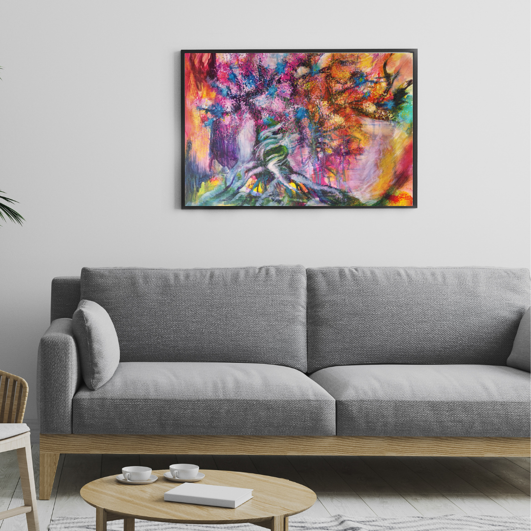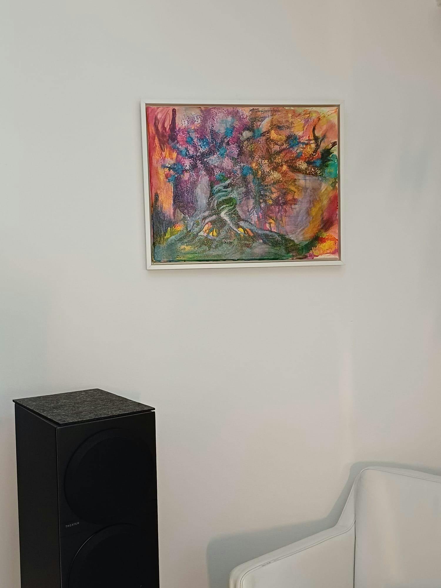 Der Baum symbolisiert für mich die Verbundenheit mit der Erde und die Farben eine unbändige Kraft und Schönheit.