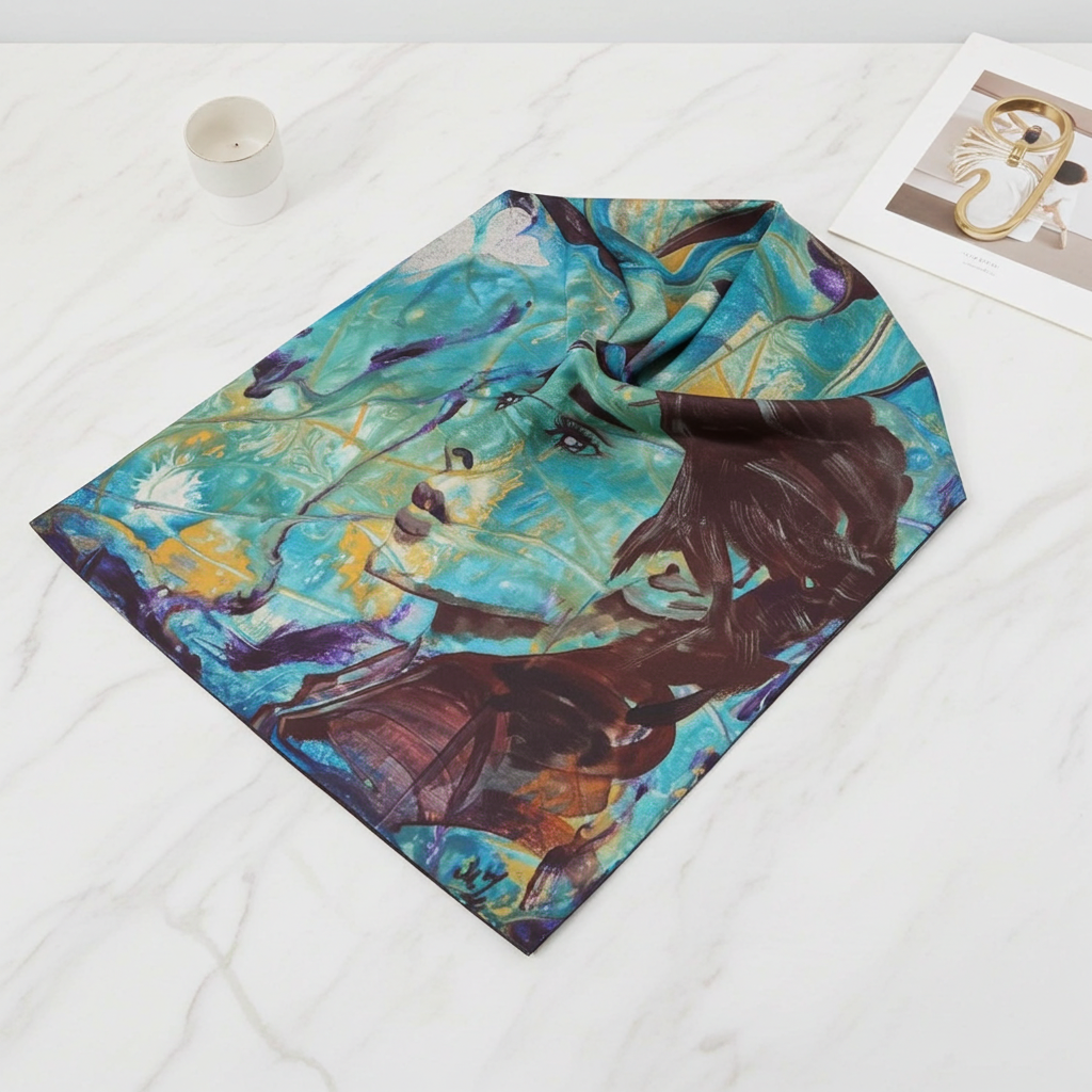 Wähle aus fünf verschiedenen Stoffen und verschiedenen Größen, um das perfekte Tuch zu finden, das deine Geschichte erzählt. Jeder Schal wird auf Bestellung handgefertigt und ist ein Unikat, das dich daran erinnert, dass Schönheit in der Einzigartigkeit liegt.